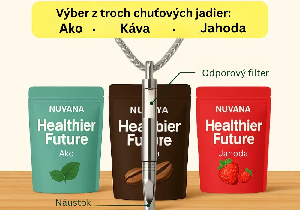 Zaži osviežujúci, chutný zážitok so svojím náhrdelníkom – vyrobeným zo 100 % prírodných esenciálnych olejov, navrhnutým tak, aby uľahčil zbavenie sa zlozvyku.
